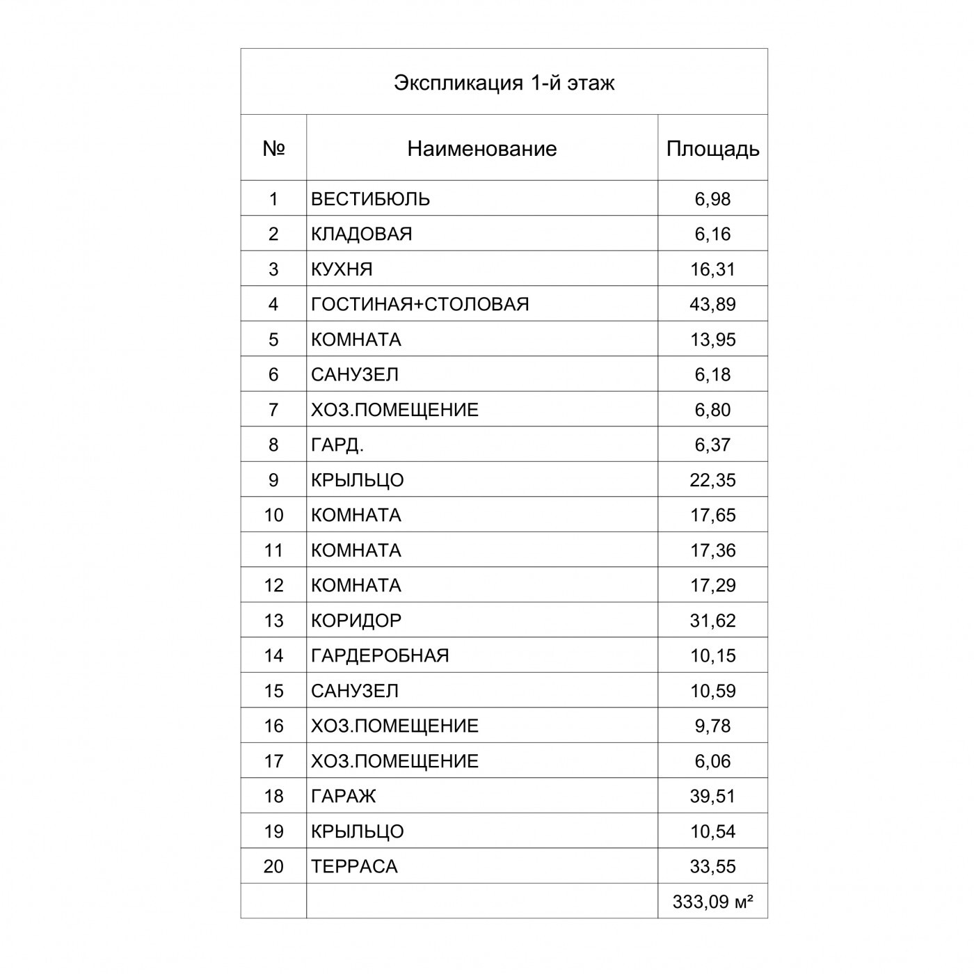 Площадь первого и второго этажей, за вычетом террас, крылец, балконов и гаражей