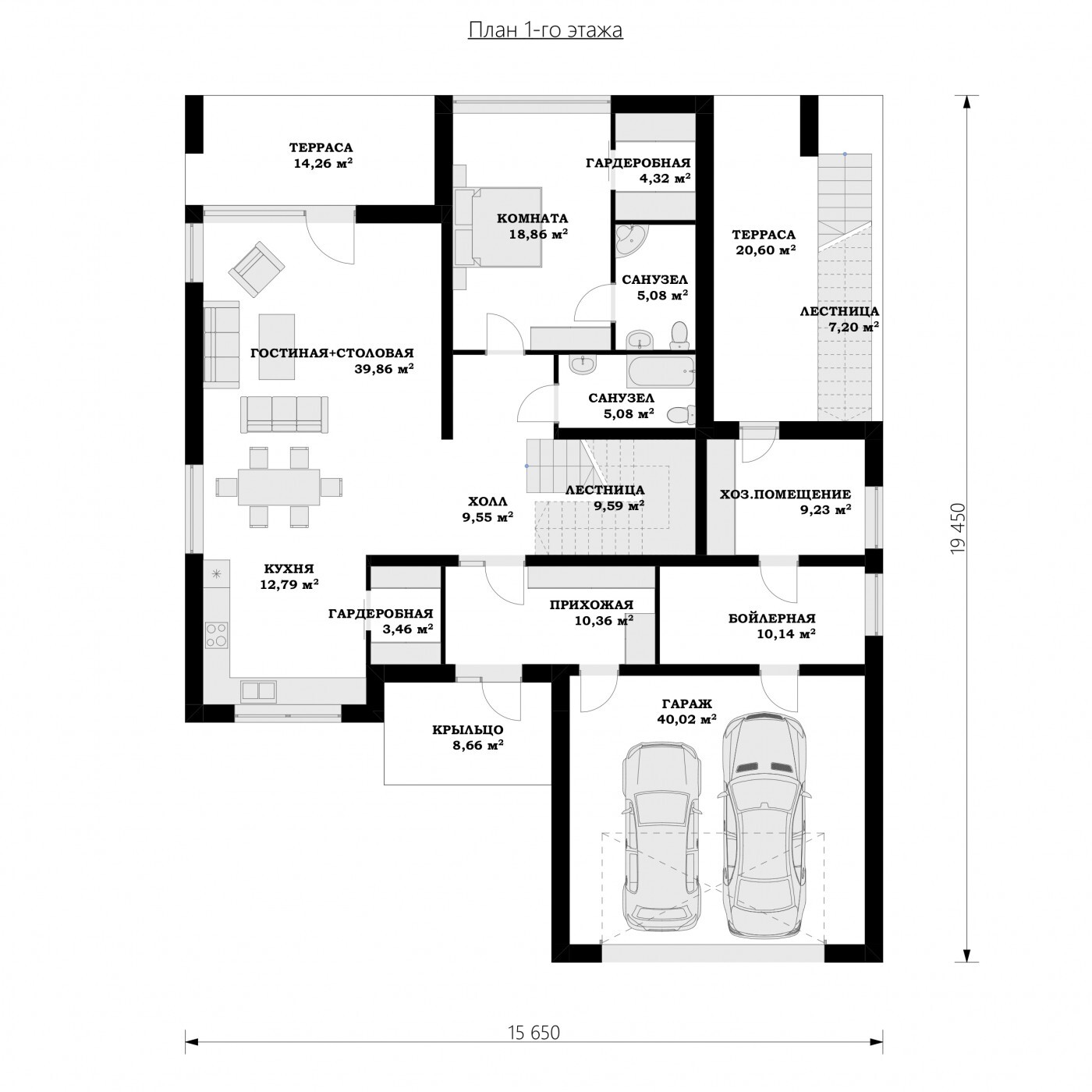 Дом 19 на 16 с плоской крышей и гаражом идеально подходит для участка со средней шириной. Объект представлен в виде L-образной постройки, благодаря чему он имеет оригинальный вид. Недвижимость спроектирована для отдельно расположенной застройки. Проект включает двунаправленное гаражное помещение. Это замечательное предложение для всех, кто хочет жить в оригинальной недвижимости. Дом 19 на 16 имеет площадь 326,96 кв. м. При этом отапливаются 231,36 кв. м. В объект входят 5 спален, 3 санузла. Комнаты уютные и просторные. Также присутствуют оригинальные коридоры. Украшением недвижимости служит стильный балкон, созданный по современным тенденциям. А большие окна создают светлое внутреннее пространство. Площадь гаража составляет 40 кв. м., он пристроен к недвижимости, что очень удобно. Преимущества дома Возведенный дом 19 на 16 с гаражом имеет свои преимущества: