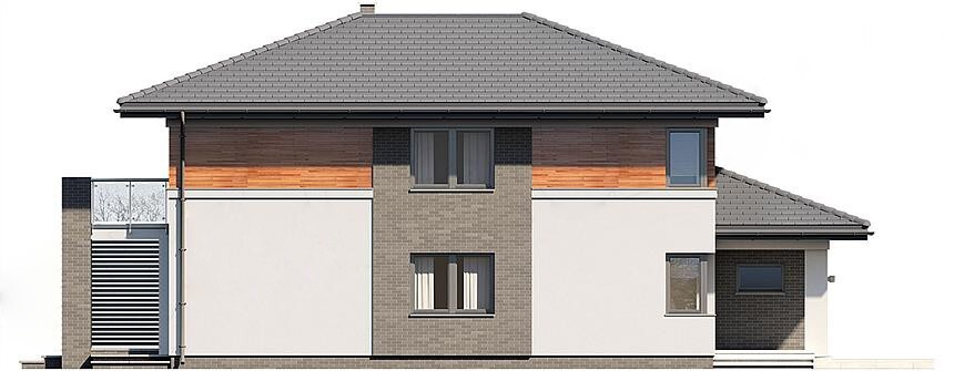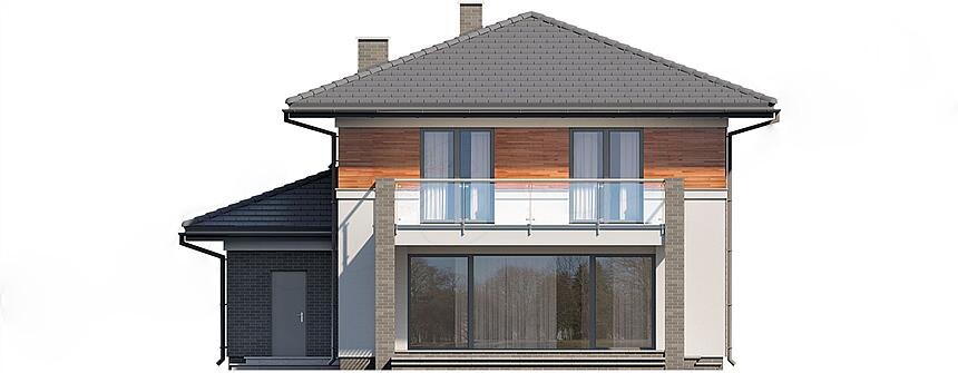 Дом имеет простую минималистичную форму, что и проект ZX 24. Проект имеет ту же реализацию, что, но в более современном стиле. Автор проекта создал двойной гараж, слегка вытянутый перед блоком, благодаря которому здание выглядит впечатляюще. Это также добавляет очарование передней аркаде, поддерживаемой элегантной колонной. Конструкция здания покрыта многоярусной крышей с низким углом наклона, что придает блоку современный вид. "Денвер"- это проект двухэтажного дома 16 на 12, который наверняка порадует тех, кто любит простор - отсутствие наклонов делает верхние комнаты полностью регулируемыми. Сердцем дома является просторная дневная зона, в которой приятно проводить время вместе с близкими. Он создан, среди прочего, функциональной открытой кухней, которую каждый инвестор может свободно адаптировать к своим потребностям. Остров на кухне - это прежде всего функциональное решение, которое является дополнительным местом для кухонной утвари. На острове также есть место для любителей шопинга, поэтому вы можете расслабиться и выпить кофе во время приготовления пищи. Сочетание столовой и гостиной способствует интеграции членов семьи. Кроме того, на первом этаже предусмотрены дополнительная комната и удобная ванная комната. Такое расположение идеально подходит для посещения гостей. На первом этаже расположены четыре спальни, поэтому проект "Денвер"является идеальным вариантом для семьи из 4-6 человек. На верхнем этаже есть ванная комната для всех членов семьи и отдельная ванная комната с выходом из спальни, что дает родителям ощущение уединения. Комфортное использование дома также зависит от подсобного помещения, включенного в него. Здание выглядит великолепно благодаря отдельной крыше над гаражной частью и впечатляющему балкону сзади. Проект создан для инвесторов, планирующих построить дом по кирпичной технологии. "Денвер" относится к современному стилю, который идеально подходит для людей, которые ценят новейшие решения.