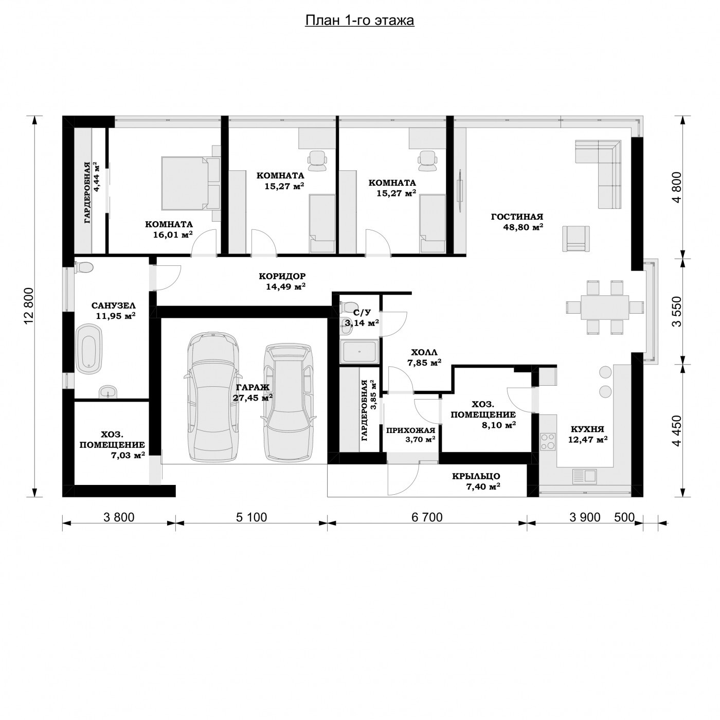 Дизайн дома "Гавана" - идеальное предложение для людей со среднешироким участком. В доме есть типичный блок, поэтому его реализация не потребит слишком много финансовых ресурсов. Дом был создан для отдельно стоящих зданий. В доме есть гараж на две машины. Корпус здания увенчан плоской крышей, что придает кузову современный вид. Проект "Гавана" - это одноэтажный дом с плоской крышей с размерами 20 на 13 , благодаря которому передвигаться по нему очень удобно. Сторонникам просторных пространств наверняка понравится дневная часть, предусмотренная в проекте. Хорошо продуманные решения на кухне дают много возможностей для обустройства и облегчают повседневное использование. В гостиной есть атмосферный камин, который дарит приятное тепло и создает в интерьере приятную атмосферу. Дизайн включает в себя две ванные комнаты, что значительно улучшит утреннюю подготовку к уходу. Три просторные спальни, включенные в дом, являются оптимальным вариантом для семьи из 2-4 человек. Пространство также может быть использовано в качестве комнаты для гостей или учебы. Очень практичное решение входит в домашний гардероб. Проекту не могло не хватить места для чрезвычайно полезного подсобного помещения. Впечатляющая терраса позволяет общаться с природой, не будучи слишком далеко от дома. Проект создан для инвесторов, планирующих построить дом по кирпичной технологии. Проект дома "Гавана" относится к современному стилю, который идеально подходит для людей, которые ценят новейшие решения.