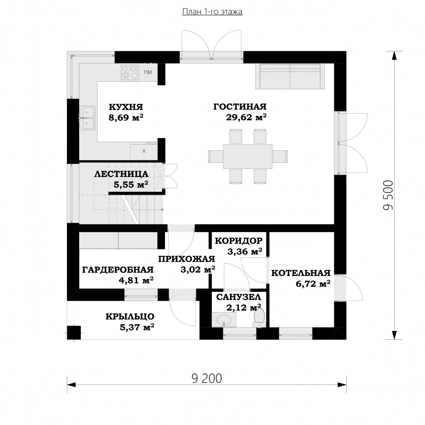 ПЛОЩАДЬ 1 ЭТАЖА 69.26 М2