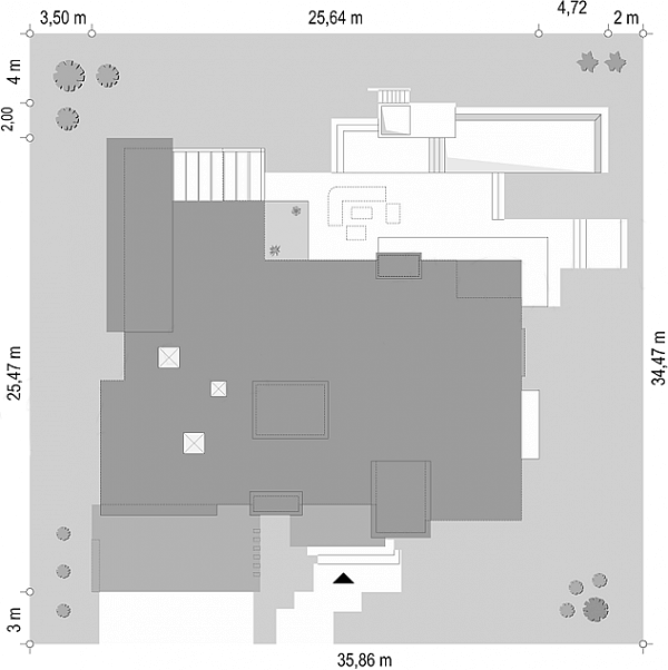 Фундамент - ребристая плита "перевернутая чаша": • Толщина плиты – 200мм • Высота ребра: 300 мм; • Бетон М350 (В25) • Рабочая арматура А500С – 12мм • Армирование плиты в два уровня ячейкой 200х200мм • Гидроизоляция плиты – профилированная мембрана Planter . Щебеночное основание 100мм • Песчаная подушка – 300мм • Геотекстиль по основанию песчаной подушки • Закладные трубы коммуникаций • Устройство канализационной трассы с выводом за пределы фундамента;