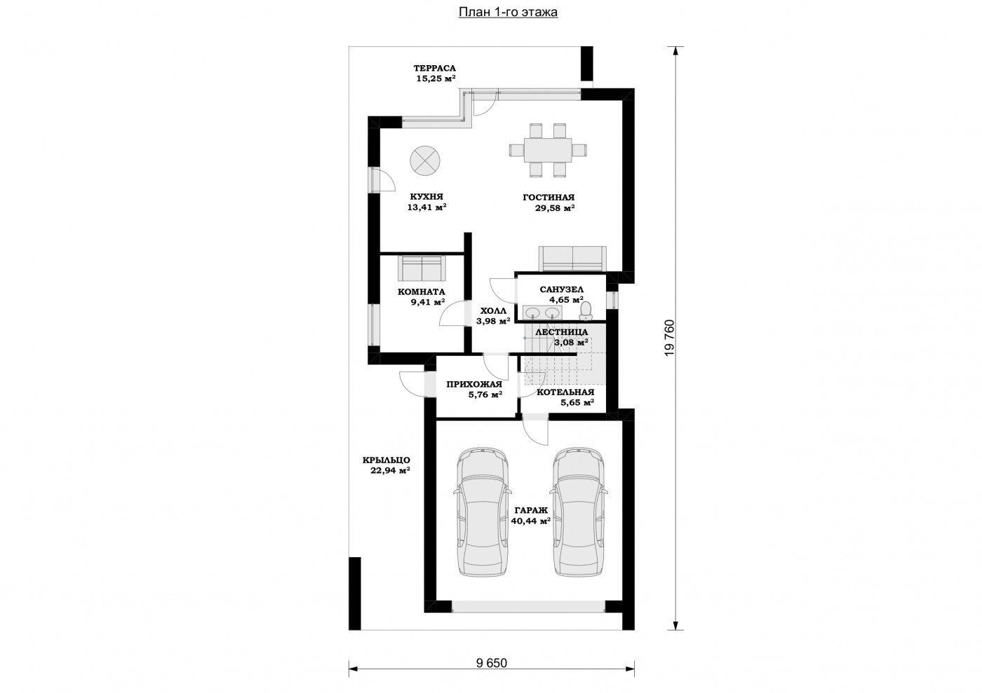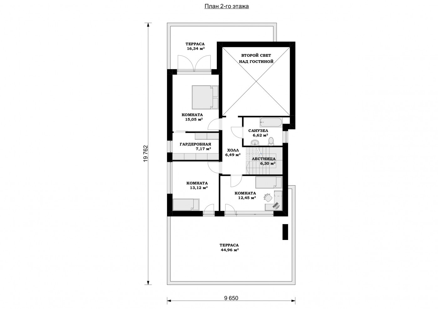 Двухэтажный дом 9 на 18 с плоской крышей «Монако» выполнен в стиле хай-тек и сразу привлекает внимание своим оригинальным остеклением. Его панорамные окна особенно оценят те, кто любит окунуться в атмосферу гармонии и единения с природой ? Выберите участок в живописном месте и будете наслаждаться видом в любое время года. По традиции, сразу при входе предусмотрена прихожая. Кстати, достаточно просторная – в ней легко поместятся два шкафа-купе. Прямо из прихожей можно попасть в котельную, а из неё – в гараж. Далее по коридору располагаются одна спальня, лестница на второй этаж и санузел без ванной. Планировка первого этажа также включает гостиную с выходом на большую крытую террасу. На ней вы можете оборудовать зону отдыха для всей семьи – поставить столик, шезлонги или даже подвесить качели ? Уверены, что на такой террасе вы будете собираться вместе гораздо чаще. Гостиная объединена с кухней и обеденной зоной – вкусные запахи любимых блюд будут добавлять ей уюта, а приготовление ужина за разговорами с семьей станет доброй традицией. На втором этаже расположены холл и три спальни, каждая из которых имеет выход на открытую террасу. В одной из спален (разумеется, хозяйской) есть большой гардероб. Планировка этажа также включает ещё один санузел – с ванной, туалетом и двумя раковинами.