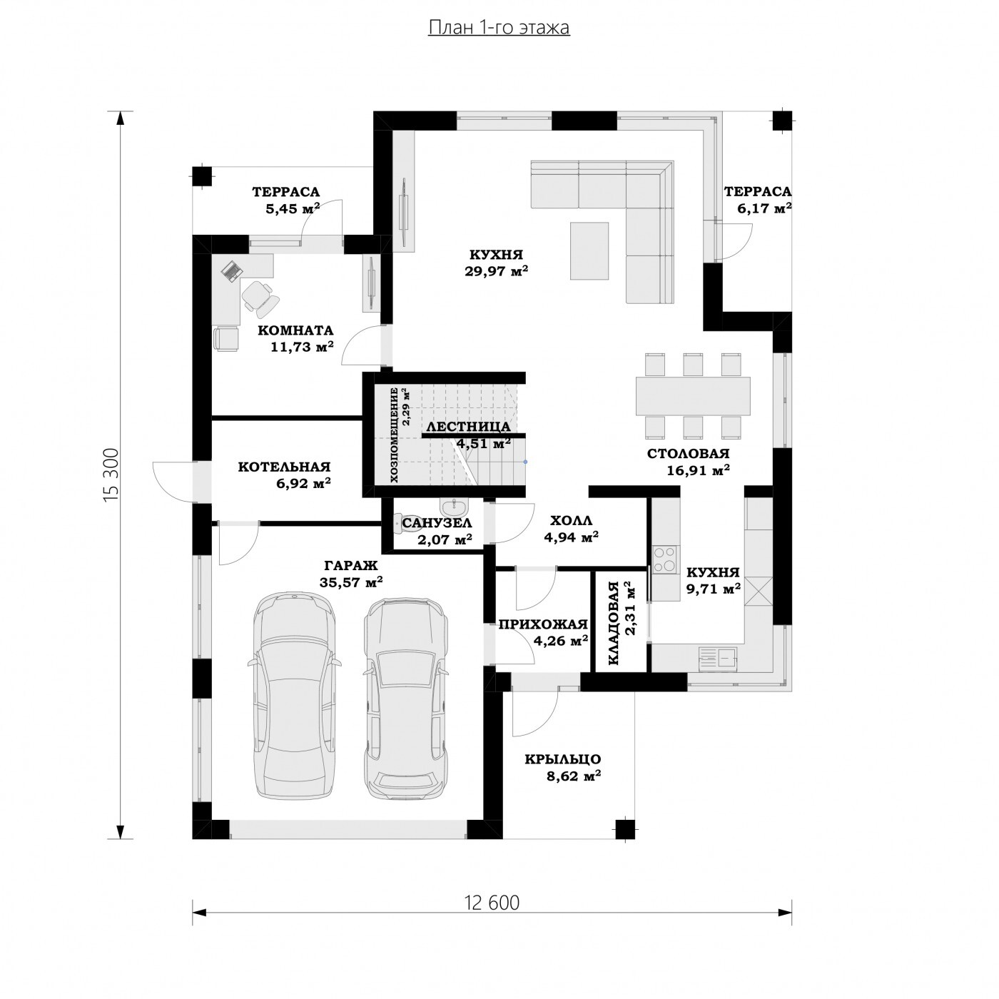 Фундамент - ребристая плита "перевернутая чаша": • Толщина плиты – 200мм • Высота ребра: 300 мм; • Бетон М350 (В25) • Рабочая арматура А500С – 12мм • Армирование плиты в два уровня ячейкой 200х200мм • Гидроизоляция плиты – профилированная мембрана Planter . Щебеночное основание 100мм • Песчаная подушка – 300мм • Геотекстиль по основанию песчаной подушки • Закладные трубы коммуникаций • Устройство канализационной трассы с выводом за пределы фундамента;