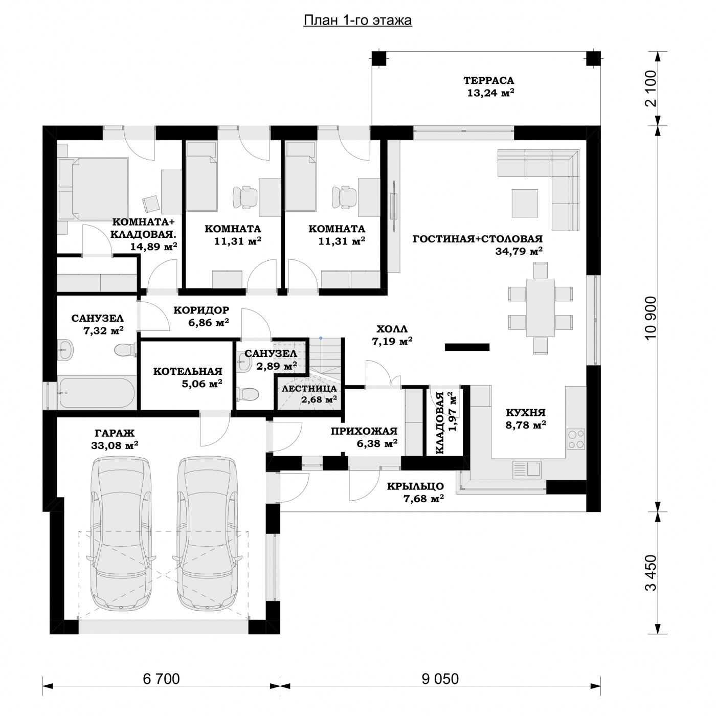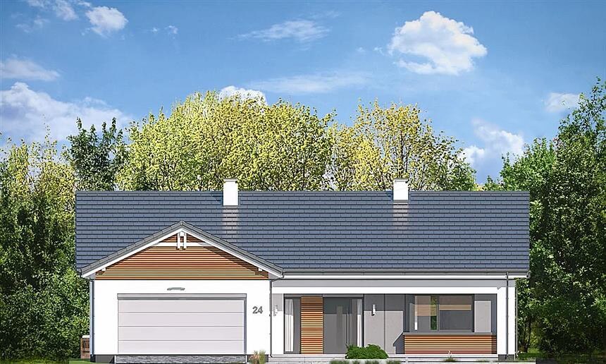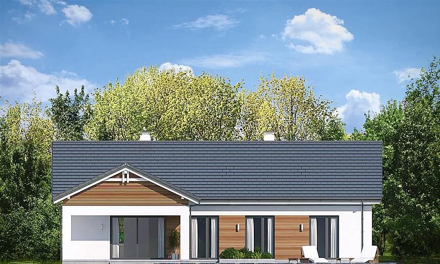 Проект одноэтажного домаявляется еще одним предложением из серии очень популярных проектов одноэтажных домов от "Рам Вилла". На этот раз это дом с двускатной крышей, простой по конструкции и с несложным блоком. Однако простой блок не является компромиссом - интересные детали, материалы, приятное остекление, которые открывают интерьер сада, создают очень привлекательный дом для одной семьи. Весь дом покрыт прямоугольной двускатной крышей под углом 25 градусов, прикрывающей небольшой чердак, который является дополнительным пространством в доме - магазине «всех вещей». Интерьер дома: все функции расположены на одном уровне, на первом этаже. Из красивого вестибюля мы идем в холл и гостиную с гостиной, столовой и кухней. Кухня с угловым окном открывается в переднюю часть дома. Рядом с кухней кладовая. Из гостиной у нас есть два больших окна - из столовой в сад, и раздвижные балконные двери - на террасу и красивая аркада. Из вестибюля мы идем по коридору до ночной части со спальнями. Есть спальни: родители с гардеробом, и две детские комнаты со встроенными шкафами. Все комнаты имеют выход на террасу. Кроме того, были спроектированы ванная комната и туалет со стиральной машиной и сушилкой. Из зала у нас есть проход через гардеробную к гаражу на две машины и котельной. Мы входим на чердак по лестнице, доступной из зала. Чердак имеет более 60 м2 дополнительной площади. Это может быть просто склад, и со временем вы можете использовать это пространство как пригодный для использования чердак - просто добавьте несколько окон и все! Проект одноэтажного дома 4 был разработан в простом, простом в сборке блоке. Дом имеет компактную планировку, это будет недорогим, чтобы нагреть и дешево в более поздней эксплуатации. Используемые материалы и решения являются энергосберегающими. Проект одноэтажного 4-х этажного дома - это идеальное предложение для Инверторов, которые хотят получить максимальный эффект от вложенных денег. Желая красивую, но также практичную и функциональную квартиру для себя и своей семьи.