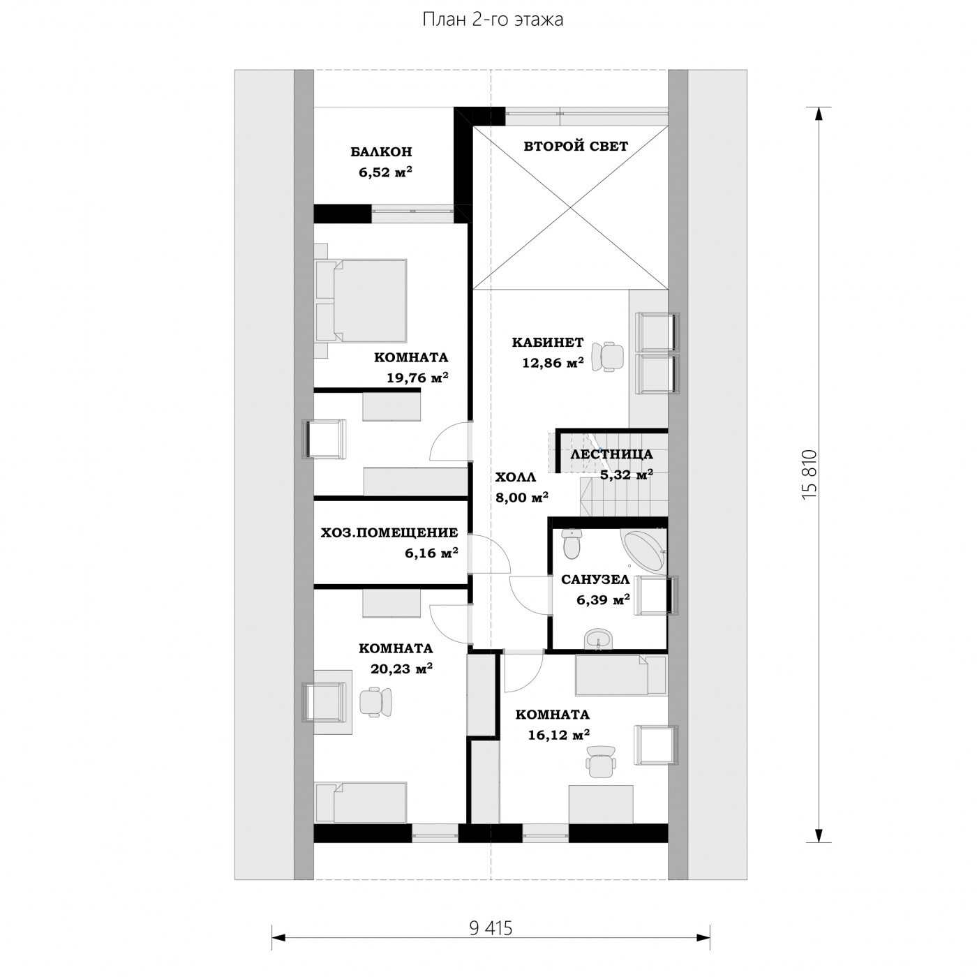Дом 9 на 15 по проекту «Афины» идеально подойдет под участок средней ширины. В доме предусмотрен единый гараж, встроенный в само здание. Данный вариант отлично подойдет для тех, кто искал дом с двускатной крышей. Это решение делает строительство дешевле и проще. Как и полагается современным трендам и решениям при строительстве, в доме предусмотрена мансарда. Подобное решение позволяет создать обустроенное пространство, которое увеличивает визуально границы дома. Дом 9 на 15 под ключ Проходя через вход мы попадаем в отдельную прихожую. За стенкой оборудована спальня. Особенность первого этажа в том, что гостиная и кухня разделены между собой, что в современных проектах встречает уже реже и относится к более «классическим» вариантам. Но у данного решения есть и свои плюсы: кухня оборудована «островком», на котором процесс готовки будет значительно удобнее, а запахи готовых блюд не будут проникать в гостиную. Говоря чуть больше о гостиной – это отдельная зона, которая совмещает в себе и столовую, которая отлично подойдет для приема гостей. Камин в этой зоне создаст неповторимую атмосферу тепла и уюта. Этажи оборудованы отдельными сан узлами. Второй этаж – это 4 комнаты, которые могут быть адаптированы под определенные нужды. Это могут быть как спальни для членов семьи, так и гостевые комнаты, кабинет и многие другие варианты. Данный проект – это сочетание классических решений в современном стиле, которые смогут подойти большому количеству людей под их нужды.