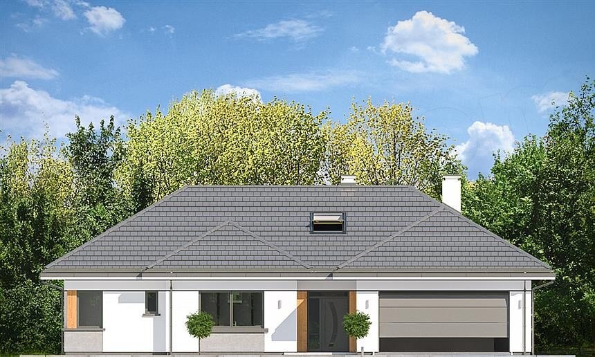 Дизайн дома "Амстердам" представляет собой несколько меньшую версию проекта «Одноэтажная вилла», идеально подходит для инвесторов, планирующих построить дом с полезной площадью до 140 м2 + гараж. Проект рассчитан на семью от 4 до 5 человек. Дом одноэтажный, построен по плану буквы Т, покрыт шатровой крышей, с надстройками над гаражом и спальнями. Архитектура здания современная и в то же время сдержанная по форме и логичности. Горизонтальное разделение фасада и большое остекление в сочетании со вставками из контрастной штукатурки и деревянной облицовки (или имитирующего дерева) делают силуэт дома более привлекательным. Мы входим внутрь с красивой входной дверью с прожектором - в прихожую и сразу в центральную жилую зону с гостиной и кухней, а оттуда боком в отдельную часть родителей и части с детскими спальнями. Гостиная с камином и стенкой для телевизора, место для комфортного отдыха и большой обеденный стол пространственно соединены с кухней с островом и кладовой. Гостиная освещена как со стороны сада - широкими стеклянными дверями на террасу, так и косвенно с передней стороны дома - через большое кухонное окно. На стороне гостиной есть квартира для родителей со спальней с террасой, а также ванной комнатой и гардеробом. С другой стороны дома у нас есть три комнаты - детские спальни и ванная комната. Из прихожей мы попадаем в гараж на две машины и котельную. План дома очень прост и логичен, и в то же время оригинален, нарушая проторенный рисунок интерьера. Над цокольным этажом есть неиспользуемый чердак, который, конечно, может быть приспособлен к дополнительному полезному пространству после незначительных изменений. Дом является отличным предложением для инвесторов, планирующих построить современный, не слишком большой, но удобный дом для одной семьи. Первый этаж, где вы можете комфортно жить на одном этаже, имея прямой контакт с садом, окрестностями, террасами. Здание имеет простую конструкцию и является энергосберегающим. Это будет легко построить и недорого использовать позже. Мы приглашаем вас!
