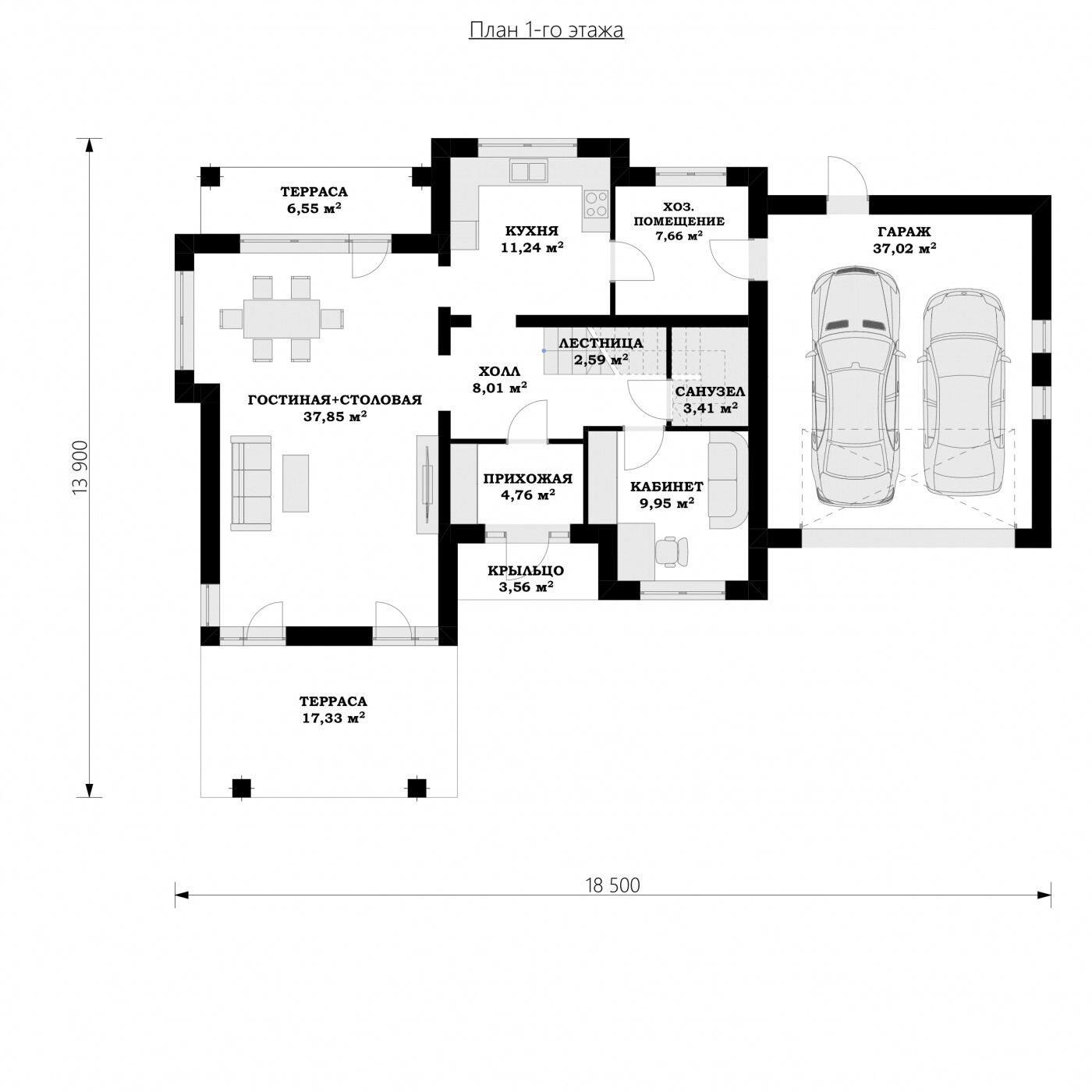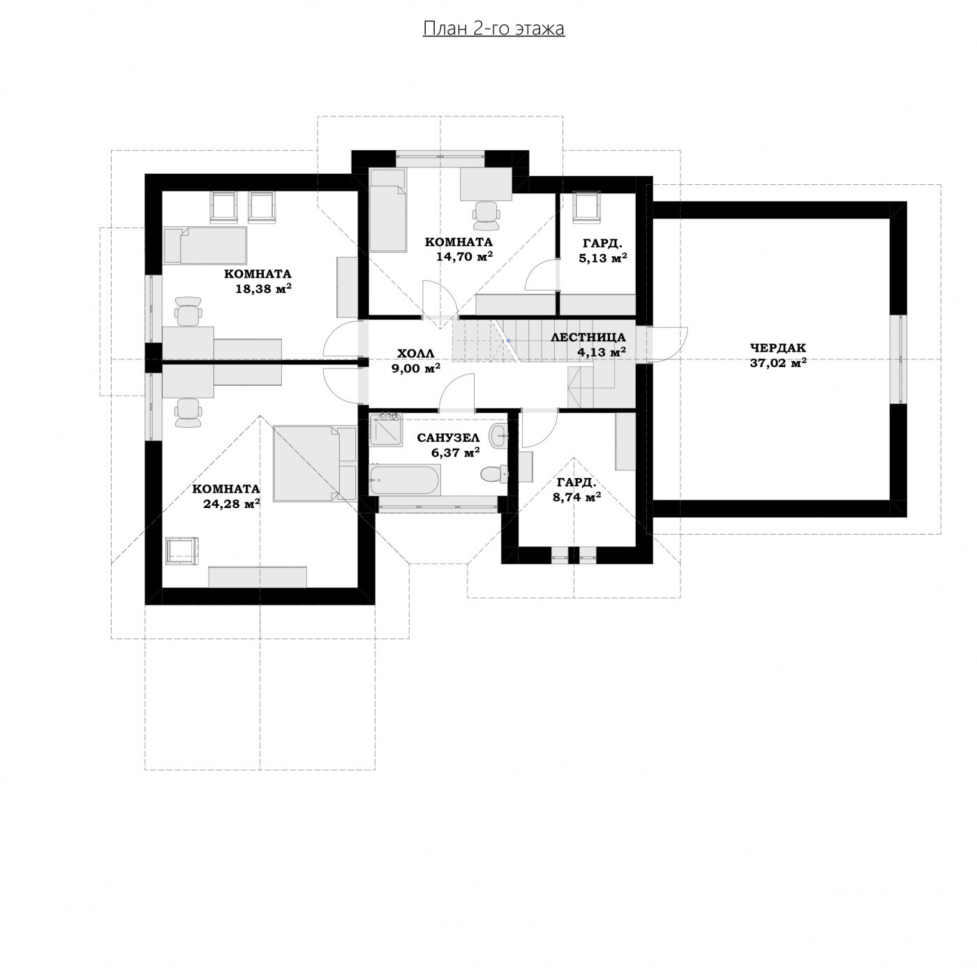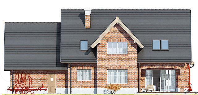 План двухэтажного дома габаритами 18 на 13м "БИРМИНГЕМ" - идеальное решение для людей со средним участком. Корпус здания имеет типичную форму, поэтому строить его дешево. Проект относится к категории домов с гребнем, расположенным параллельно дороге, что часто указывается в плане пространственного развития. Дом был создан для отдельно стоящих зданий. Автор проекта предусмотрел двойной гараж на линии здания. Корпус здания покрыт двускатной крышей, что позволяет значительно сэкономить. Проект посвящен, в частности, людям, у которых есть участок с входом с юга. Проект "БИРМИНГЕМ" - это одноэтажный дом с мансардой, что означает что полезная площадь не ограничена размером участка. Сторонникам просторных пространств наверняка понравится дневная часть, предусмотренная в проекте. Благодаря закрытию кухни в гостиной запахи готовых блюд не ощущаются в гостиной. Окно на кухне с видом на сад позволяет наблюдать за играющими детьми, готовя еду. Дневную зону также создает просторная гостиная со столовой, благодаря которой члены домохозяйства могут объединиться в одном месте. Кроме того, в гостиной есть камин, придающий интерьеру неповторимую атмосферу. На обоих этажах предусмотрена полностью функциональная ванная комната, что значительно улучшит утреннюю подготовку к уходу. Ночная часть состоит из четырех спален, которые хорошо подойдут для семьи из 4-6 человек. Пространство также может быть использовано в качестве комнаты для гостей или учебы. Кроме того, в доме также есть подсобное помещение, которое вы можете использовать в соответствии с вашими потребностями. Терраса является идеальным местом для организации семейных торжеств и минут отдыха. Внешний вид дома усиливает характеристики традиционного стиля, поэтому он будет отлично смотрится вне зависимости от местности.