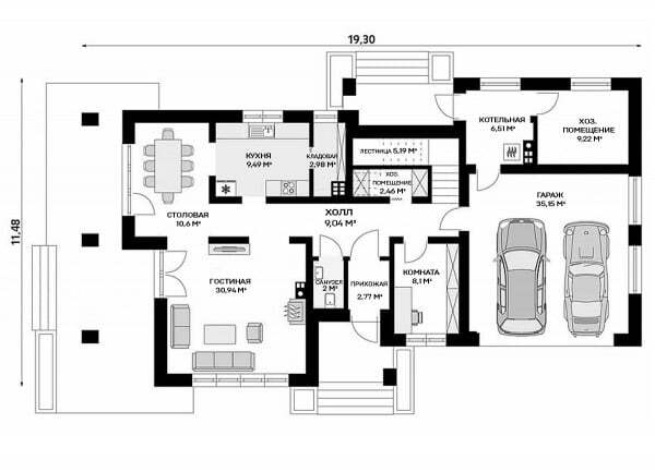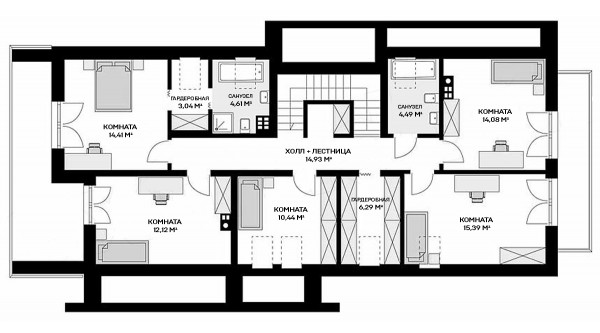 Фундамент - ребристая плита "перевернутая чаша": • Толщина плиты – 200мм • Высота ребра: 300 мм; • Бетон М350 (В25) • Рабочая арматура А500С – 12мм • Армирование плиты в два уровня ячейкой 200х200мм • Гидроизоляция плиты – профилированная мембрана Planter . Щебеночное основание 100мм • Песчаная подушка – 300мм • Геотекстиль по основанию песчаной подушки • Закладные трубы коммуникаций • Устройство канализационной трассы с выводом за пределы фундамента;