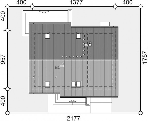 Это лучший проект дома 14 на 9 здание красивое, уютное и очень функциональное. Дом был точно разработан для нужд семьи из четырех или пяти человек. Компактный, компактный корпус дома, основанный на прямоугольной проекции, покрыт двускатной крышей с очень простой деревянной структурой. Дом был дополнительно спроектирован с очень просторным гаражом на одну машину, встроенным блоком здания. Простой и очень функциональный интерьер предполагает дневную зону вместе с комнатой для гостей на первом этаже и полностью запланированную ночную зону на чердаке. Просторная гостиная со столовой выходит на сад, дополненный частично крытой террасой, которая идеально подходит для летнего обеда. Над гаражом и котельной есть большой пригодный для использования чердак, который можно использовать как дополнительную комнату или комнату отдыха. При необходимости чердак можно разделить на две комнаты поменьше. В здании имеется котельная, в стандартном варианте с котлом на твердом топливе - уголь эко-гороховый, по желанию также предусмотрена газовая установка с газовой печью. Оптимальная высота локтевой стены (106 см в жилой зоне и 163 см в мансарде) обеспечивает удобное жилое пространство на чердаке и поддерживает идеальные пропорции тела здания. Здание представляет собой компромисс традиционной формы, современной эстетики и современных материалов, таких как деревянная облицовка фасада или благородная гладкая керамическая плитка. Вневременная архитектура этого небольшого дома делает что он легко впишется практически в любой пейзаж. Дом очень экономичен в использовании и недорог в строительстве, идеален в своей простоте.