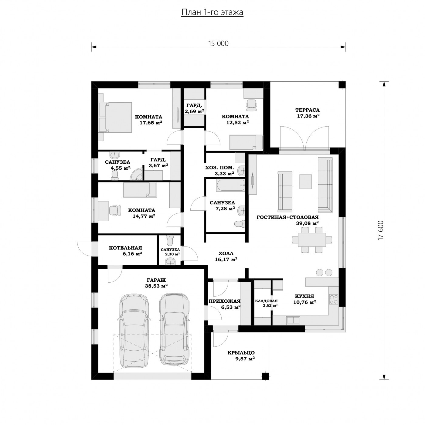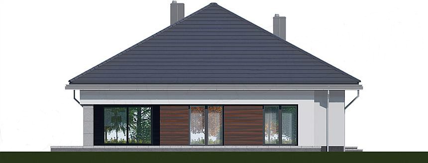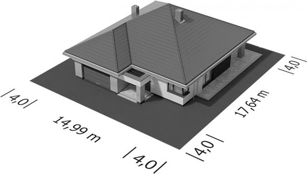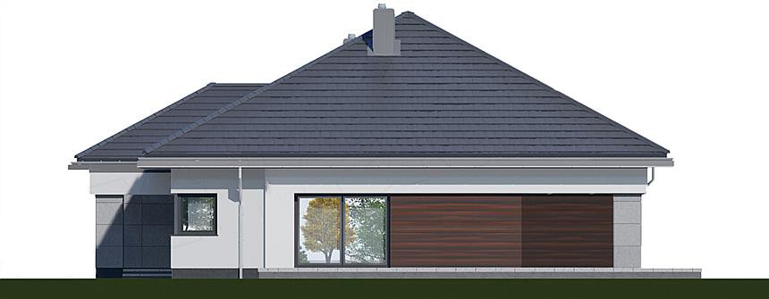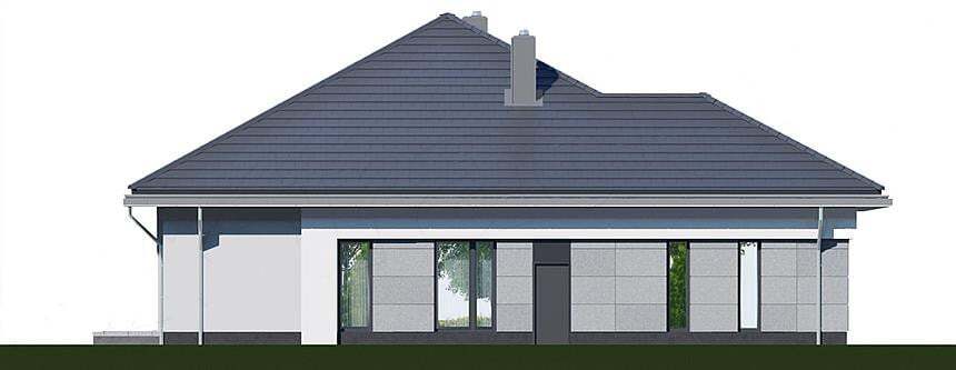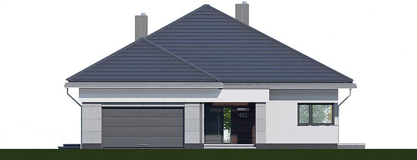 Современный, функциональный одноэтажный дом с двойным гаражом был спроектирован для семьи из четырех человек. Вход в дом, защищенный аркадой, ведет к прихожей с местом для гардероба. Жилая часть дома состоит из удобной кухни с окном с передней стороны дома и просторной гостиной со столовой и зоной отдыха. Широкие террасные двери оптически увеличивают гостиную и столовую. Терраса защищена большой аркадой, которая защищает от солнца и дождя. В гостиной камин может помочь обогреть ваш дом в холодное время года. Спальная зона была четко отделена от остальной части дома, чтобы обеспечить конфиденциальность. В этой части дома были спроектированы три комнаты, в том числе спальня с двуспальной кроватью с гардеробной и собственной ванной комнатой, а также две меньшие спальни. Рядом с ними большая общая ванная комната, прачечная.